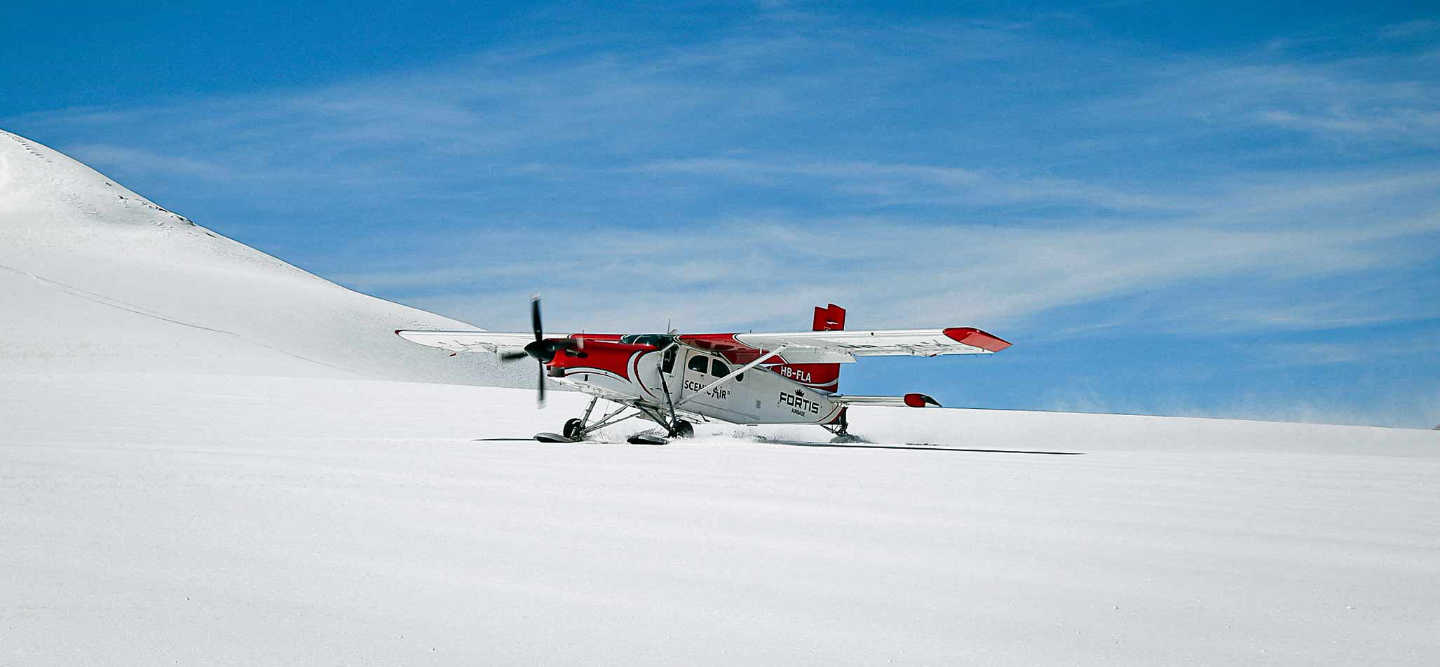Mit dem Gletscherflugzeug landest du nach einem schönen Alpenrundflug auf einem Schweizer Gletscher. Diese Flugzeug Gletscherlandung ist ein unvergessliches Erlebnis mit Buschpilotenfeeling - garantiert! Auf der Basis in Beromünster in der Zentralschweiz begrüsst dich dein Pilot und erklärt dir alles um den bevorstehenden Alpenrundflug mit Gletscherlandung. Und bereits hebst du im speziellen Flugzeug für Gletscherlandungen ab und fliegst Richtung Berner Oberland über Interlaken und dem Brienzersee. Nach einem eindrücklichen Alpenrundflug in der majestätischen Bergwelt des Berner Oberlandes kommt der Landeplatz zum Vorschein. Noch eine grosse Kurve, um die Landestelle zu inspizieren und schon setzt der Pilot zur Gletscherlandung auf dem Kanderfirn oder Petersgrat an. "Unmöglich", wirst du denken, wenn der Pilot die Landestelle auf dem Gletscher zeigt. Aber der erfahrene Gletscherpilot setzt das Flugzeug gekonnt auf dem Schnee auf.