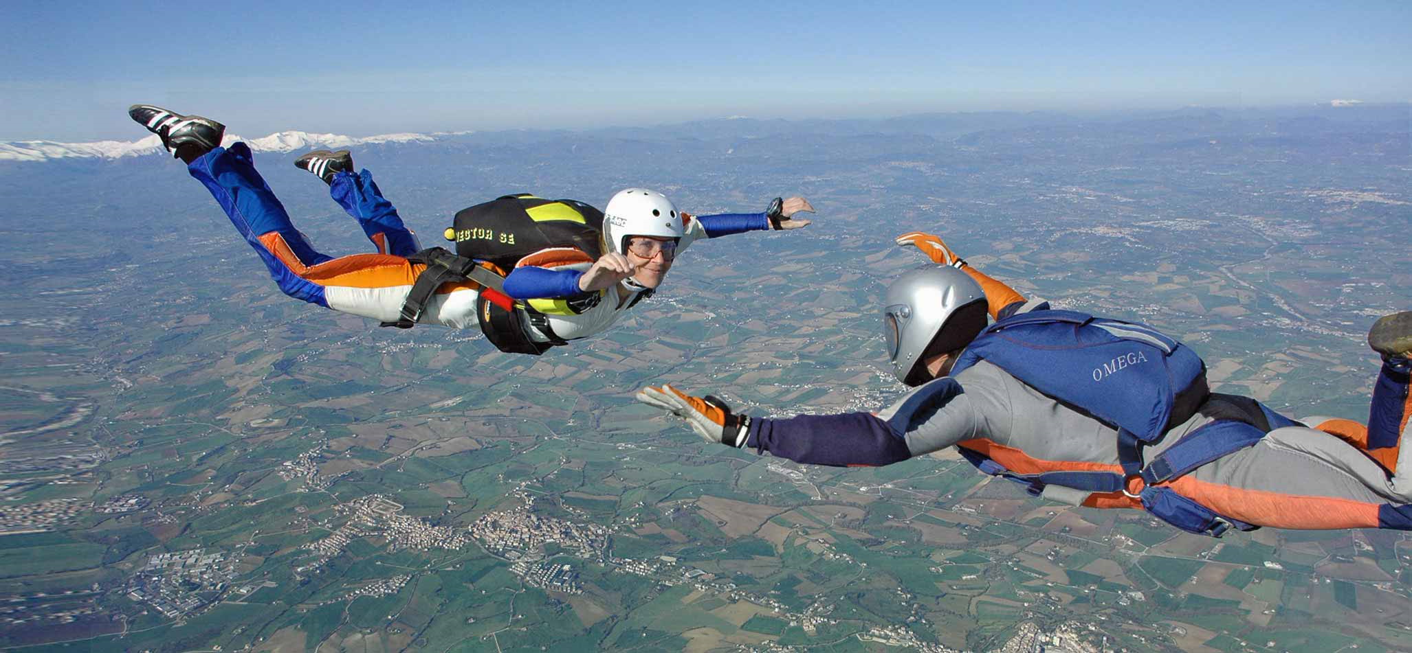 1 Tandemsprung plus 1 Solosprung mit ca. 40-50 Sekunden Freifall, unterstützt durch zwei Instruktoren. Kursdauer 2 Tage. Ab dem Flugplatz Locarno.